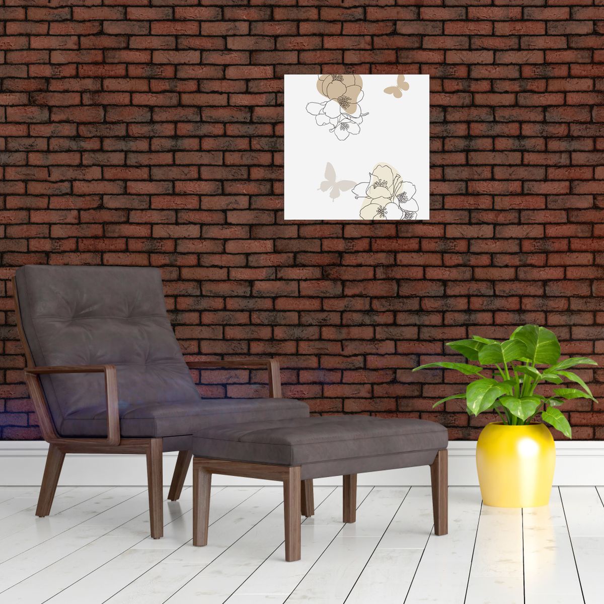 Obraz - Beżowe kwiaty z motylem N⁰2