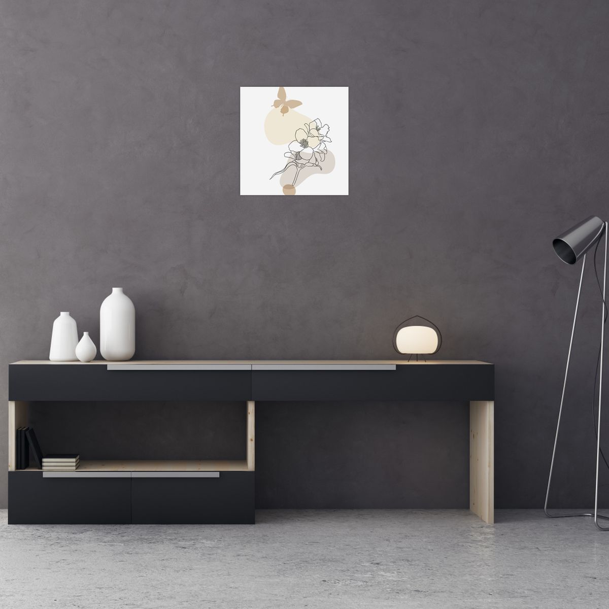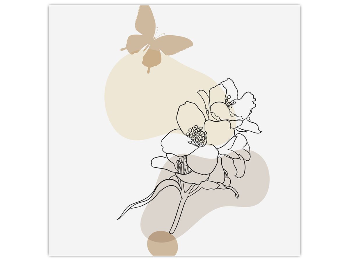 Obraz - Beżowe kwiaty z motylem N⁰3