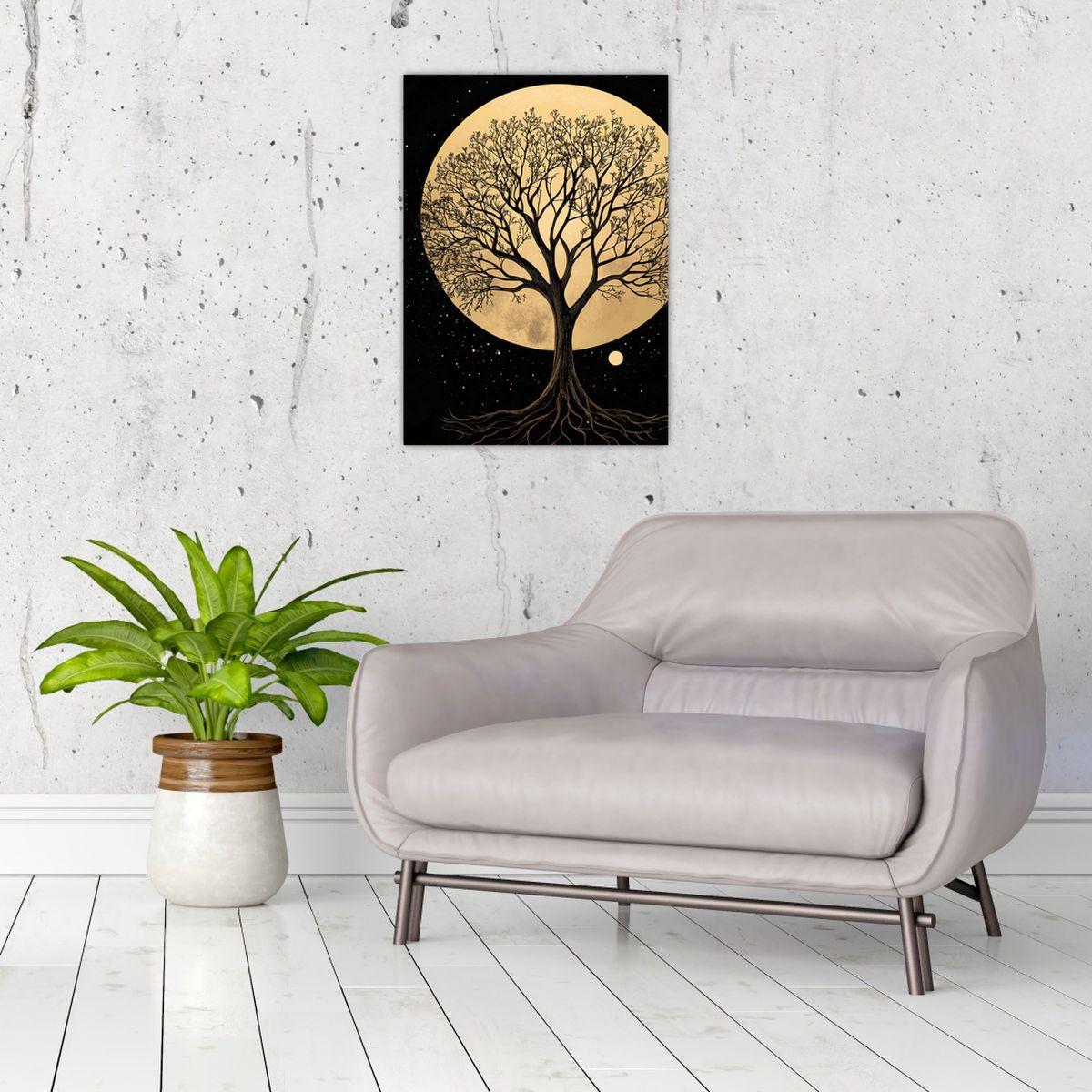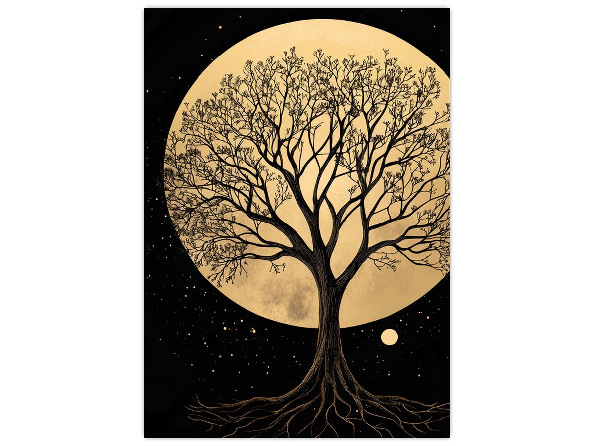 Obraz – Drzewo w złotej pełni księżyca I.