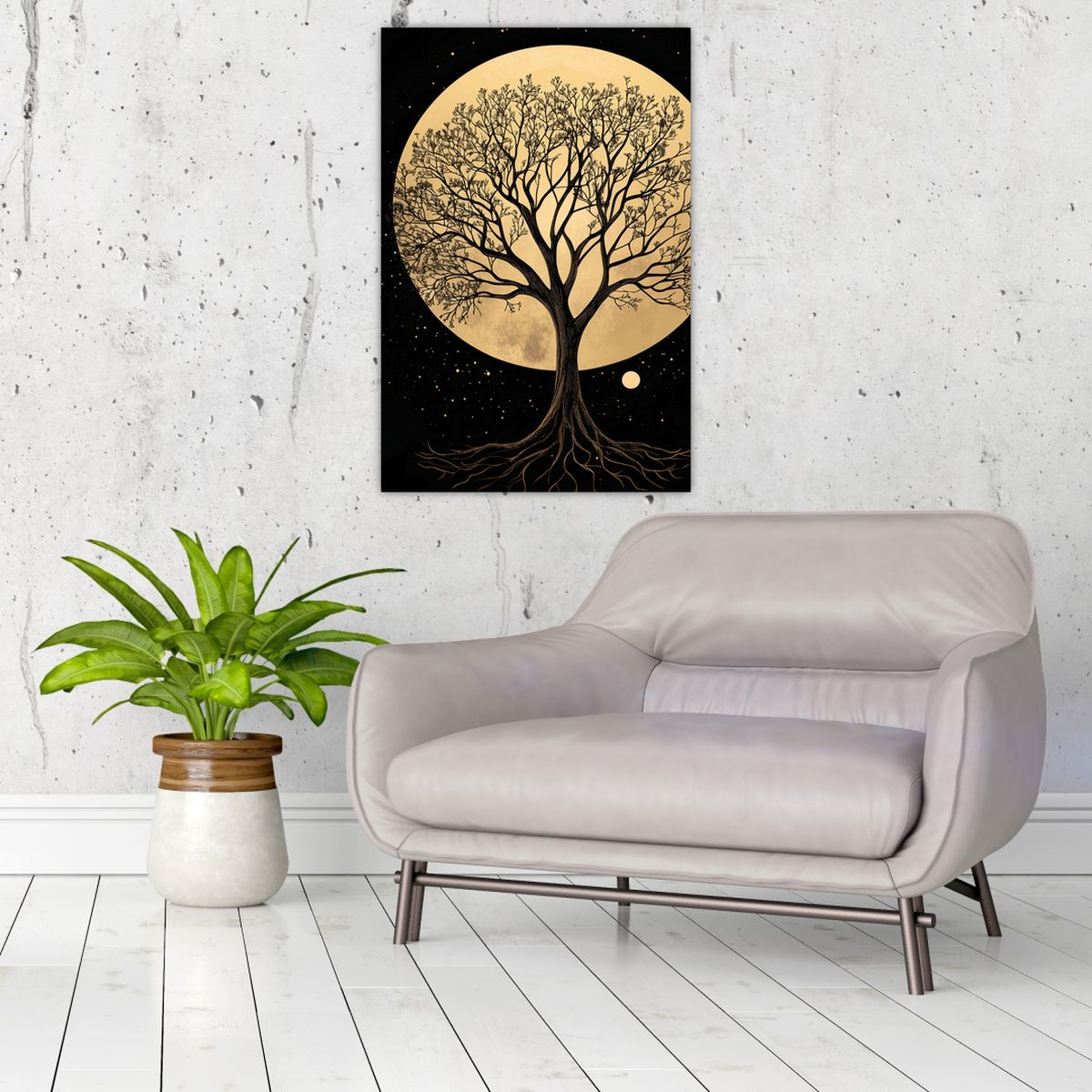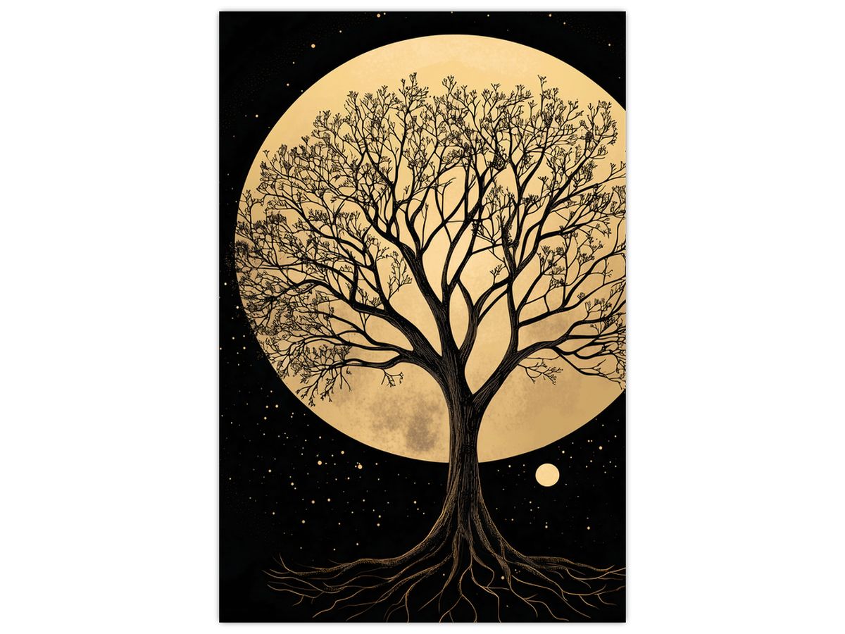 Obraz – Drzewo w złotej pełni księżyca I.