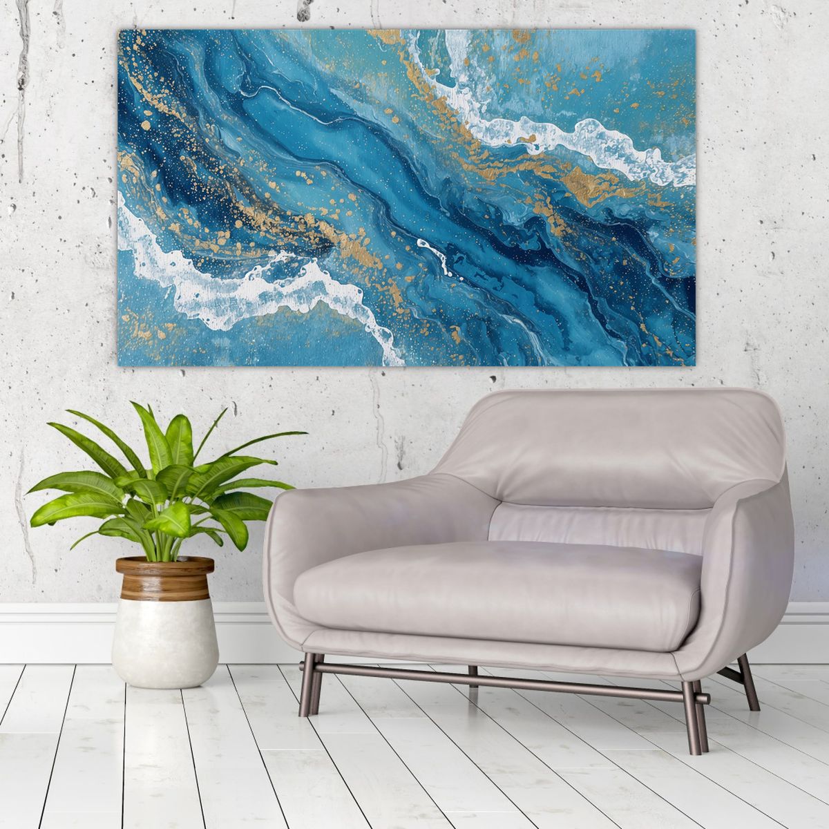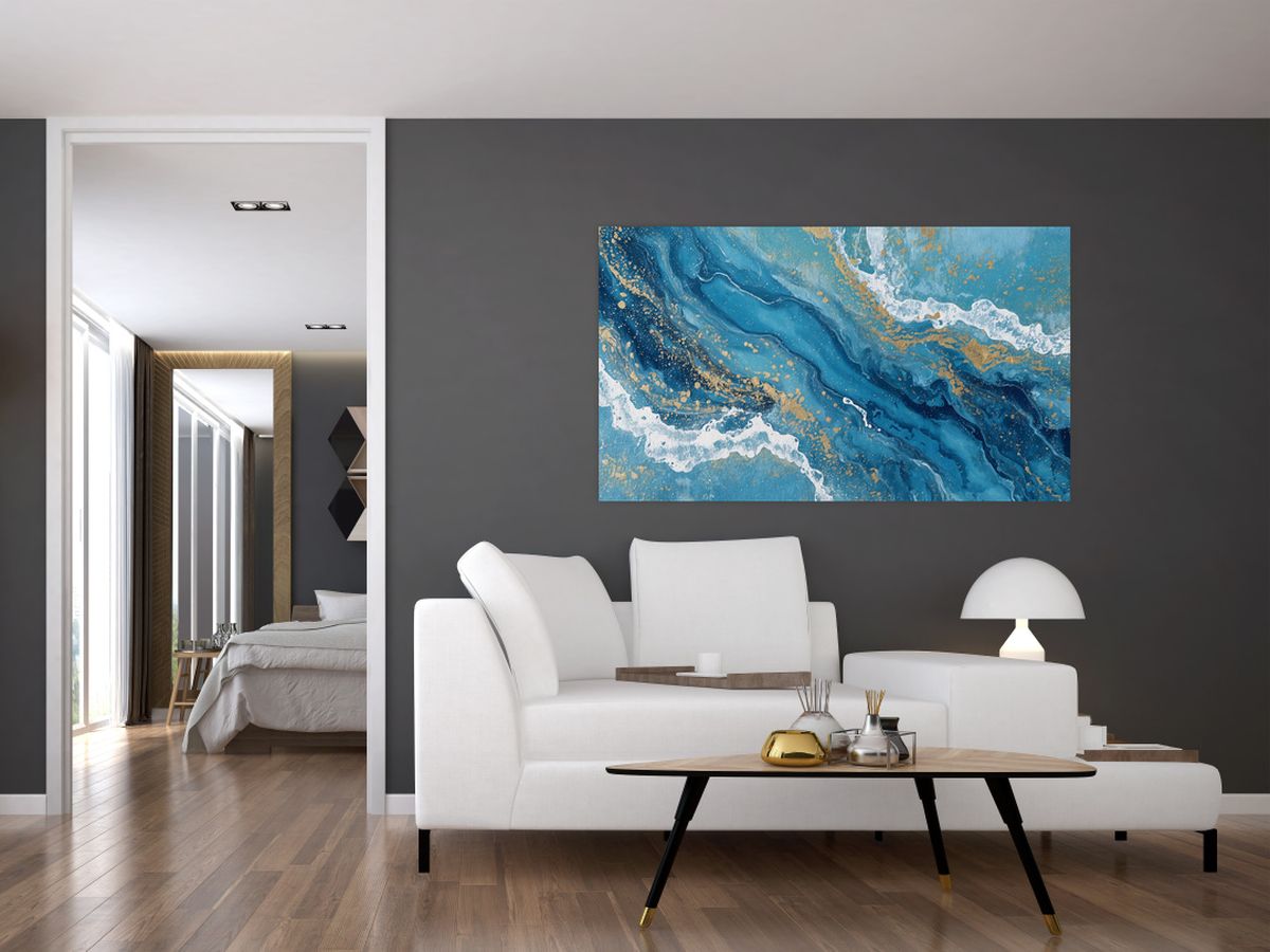 Obraz - Jasnoniebieski marmur ze złotem II.