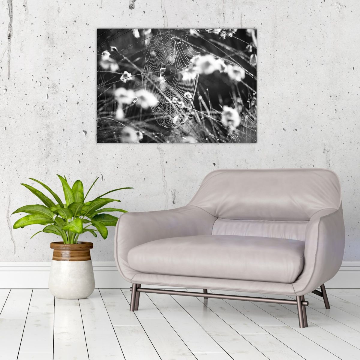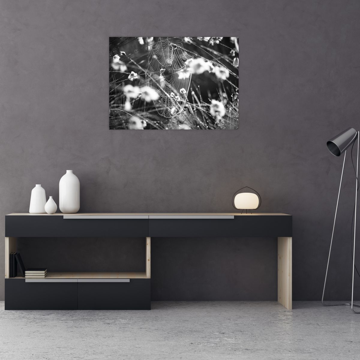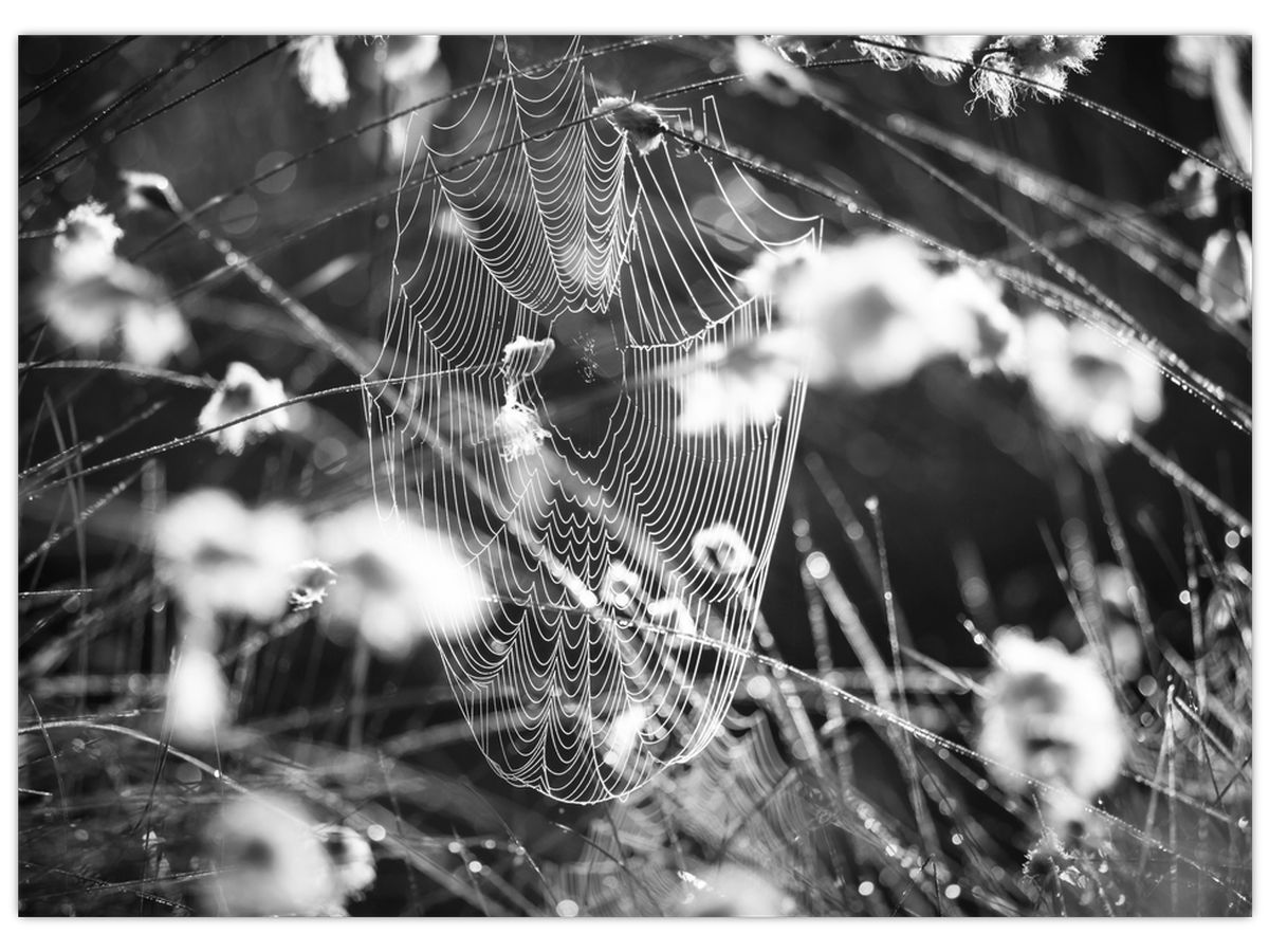 Obraz na szkle - Pajęczyna na łące