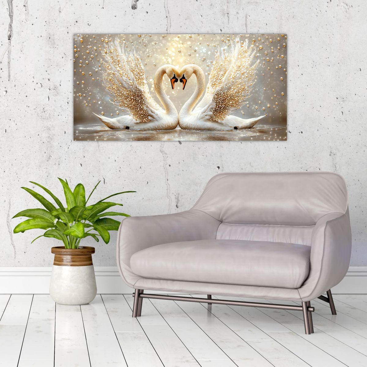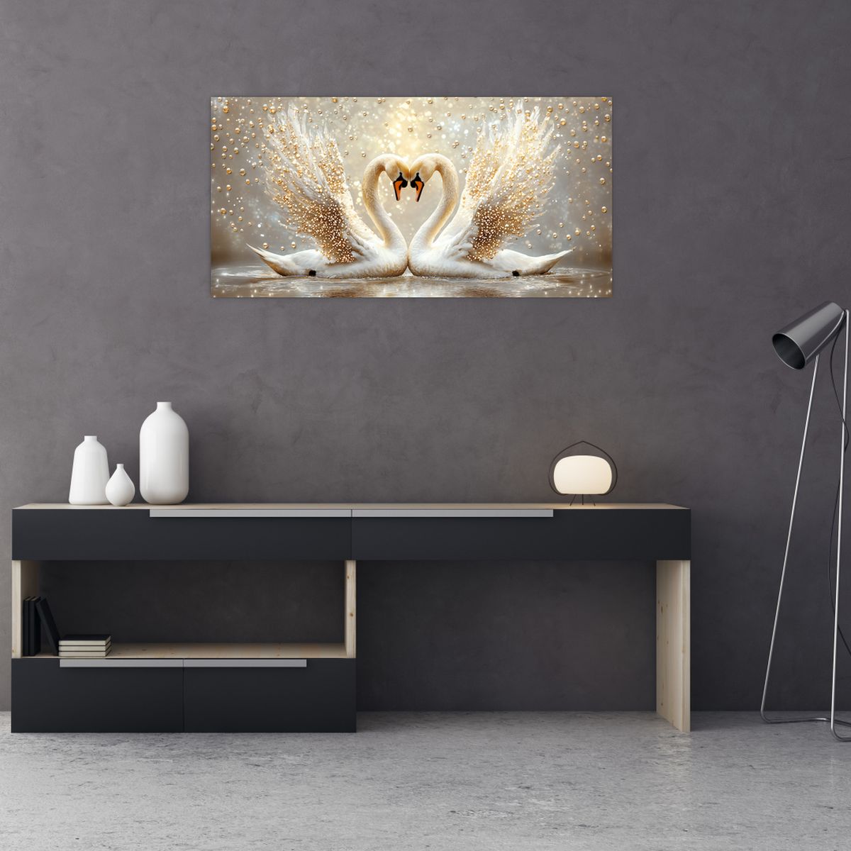 Obraz na szkle - Złote łabędzie