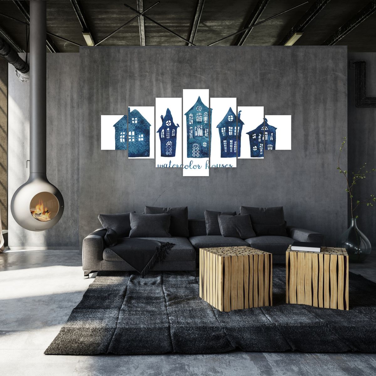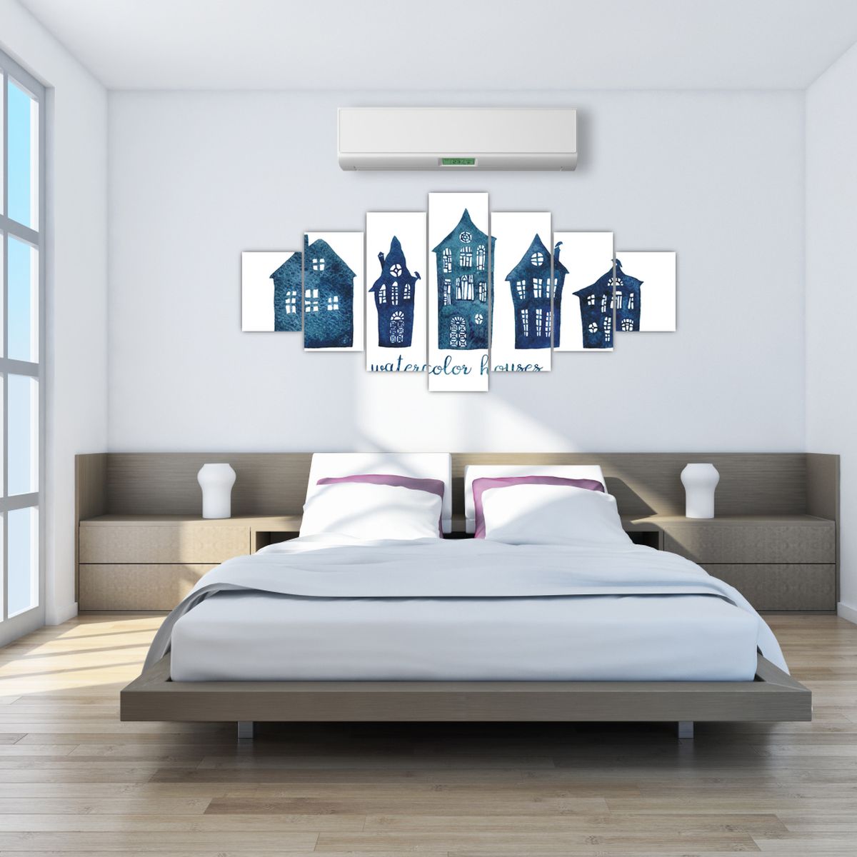 Obraz - Niebieskie domy akwarelowe